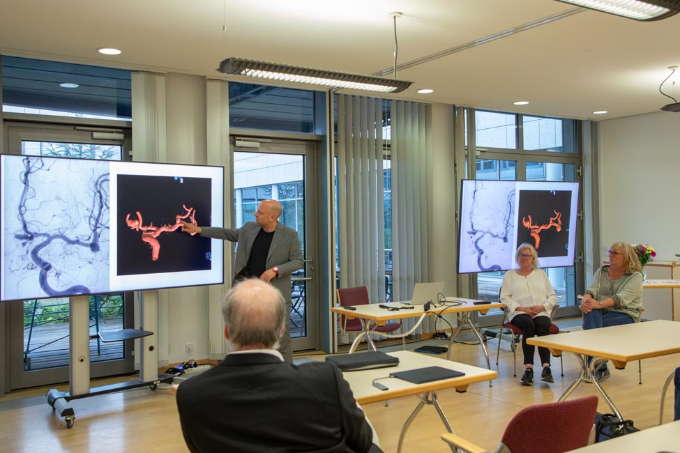 Ein besonderer Höhepunkt war die Vorstellung von Behandlungserfahrungen aus Sicht zweier Patientinnen der Universitätsmedizin Magdeburg. Der authentische Einblick in den Ablauf einer minimal-invasiven Aneurysmabehandlung machte deutlich, wie zentral die Patientenperspektive für eine moderne, ganzheitliche Medizin ist.