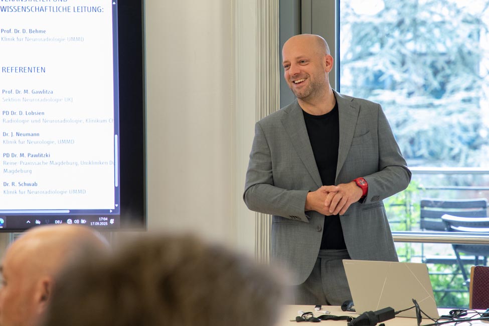 Die Eröffnung übernahm Prof. Dr. D. Behme, Direktor der Klinik für Neuroradiologie der Universitätsmedizin Magdeburg und wissenschaftlicher Leiter der Tagung.